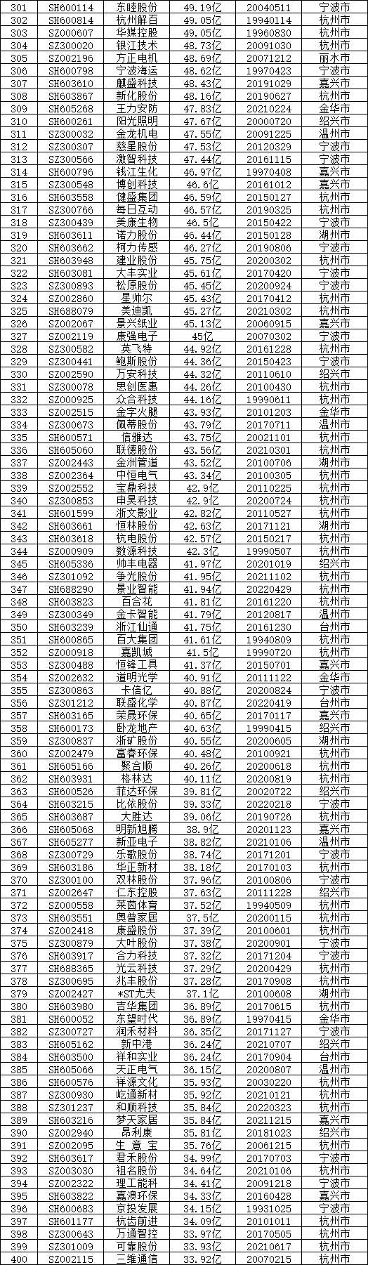 排行榜前十依然变化不大,海康威视以3414.82亿的市值占据第一名,宁波银行以2364.75亿位居第二,荣盛石化排名第三,市值:1558.32亿,华友钴业第四位,市值为1518.11亿,合盛硅业以1267.09亿的市值排名第五位,后几位排名依然是较熟悉的企业,第六到第十名分别是:三花智控、泰格医药、公牛集团、杭州银行、福斯特,其中三花智控是本年度第一次闯入前十,今年1-5月均排在17-25位之间,前十企业中有5家企业总市值超千亿的。